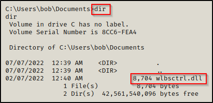 可以看到,恶意 DLL 文件已送达受害者机器。