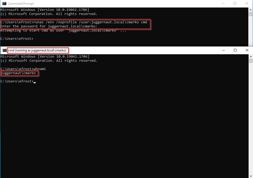 runas /env /noprofile /user:juggernaut.local\cmarko cmd