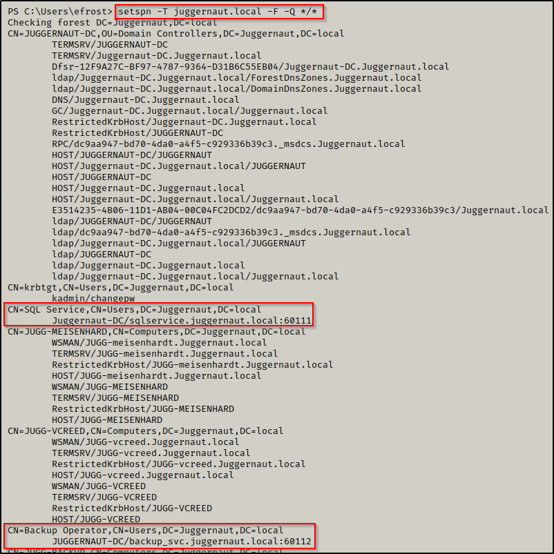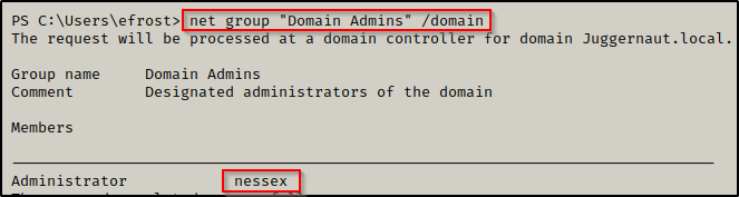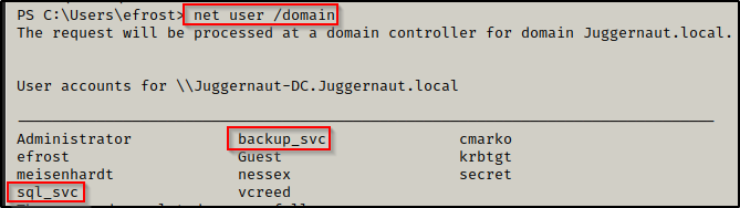 在某些情况下,我们以普通域用户 efrost 的身份在备份服务器上获得了立足点。由于我们是利用 web 应用程序漏洞获得的立足点,因此我们没有用户的密码。