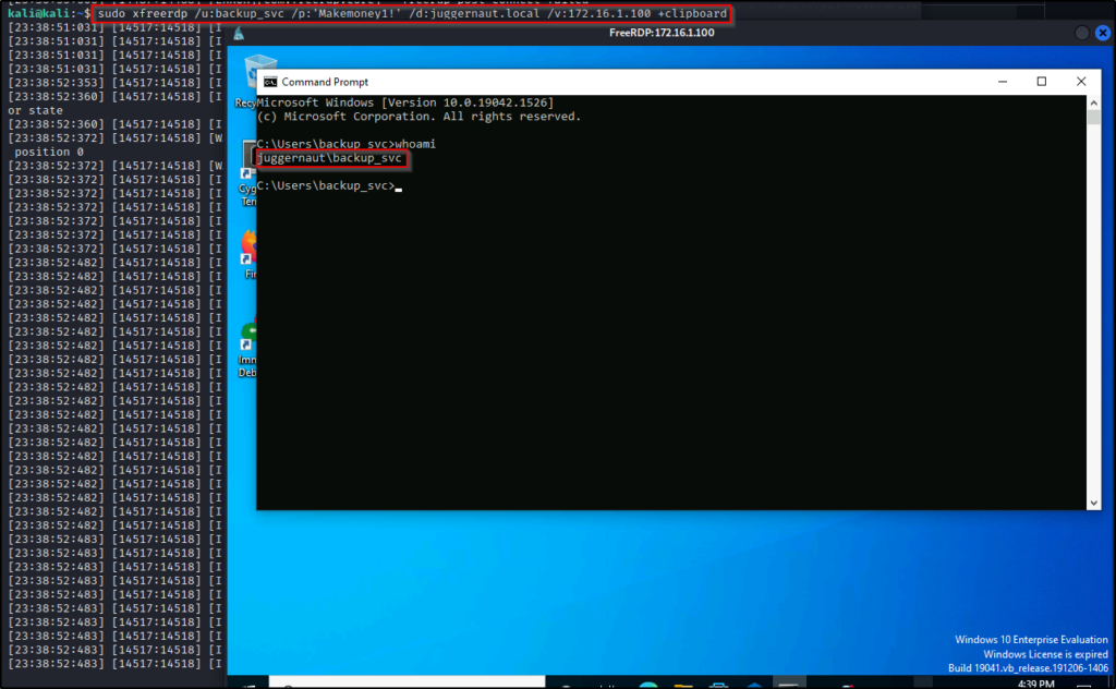 sudo xfreerdp /u:backup_svc /p:'Makemoney1!' /d:juggernaut.local /v:172.16.1.100 +clipboard