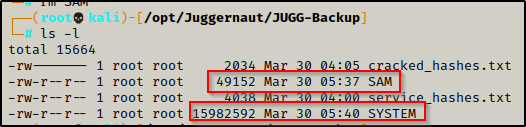 download .\SYSTEM /opt/Juggernaut/JUGG-Backup/SYSTEM