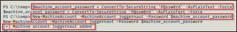 New-MachineAccount -MachineAccount juggernaut -Password $machine_account_password