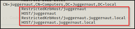 setspn -d RestrictedKrbHost/juggernaut.juggernaut.local juggernaut