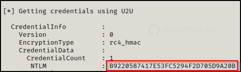 使用以下 Rubeus.exe 命令,我们就能够请求到实际 DC 计算机帐户的 TGT 票证,进而获取到 DC 机器账户的 NTLM 哈希值: