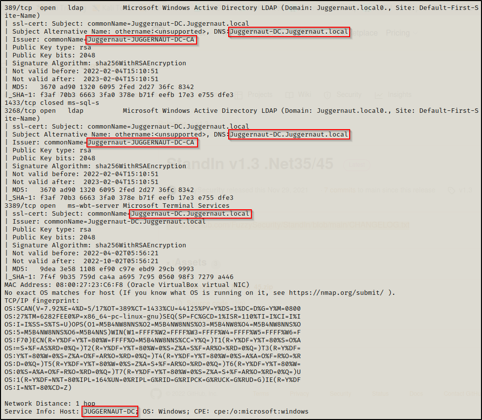• DNSHostname: Juggernaut-DC.Juggernaut.local