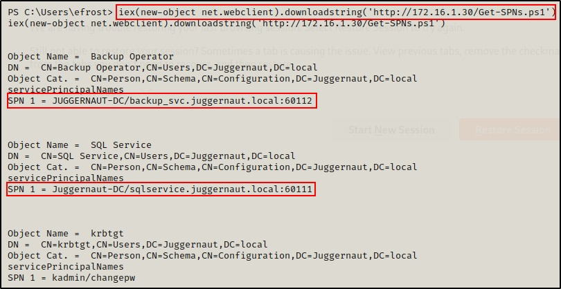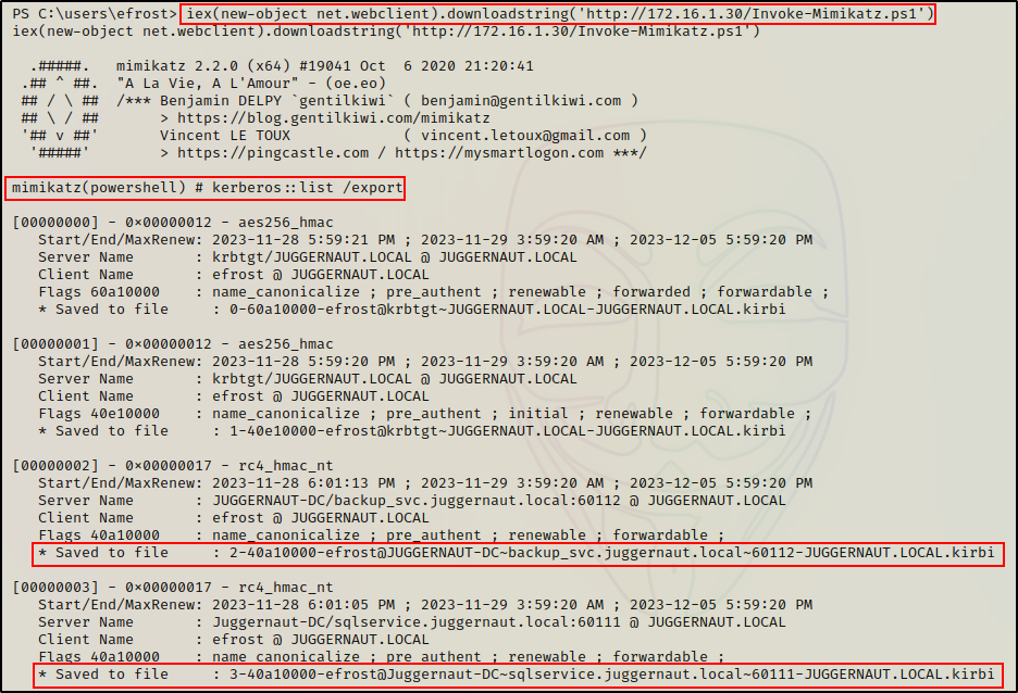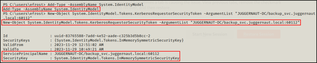 New-Object System.IdentityModel.Tokens.KerberosRequestorSecurityToken -ArgumentList "JUGGERNAUT-DC/backup_svc.juggernaut.local:60112"