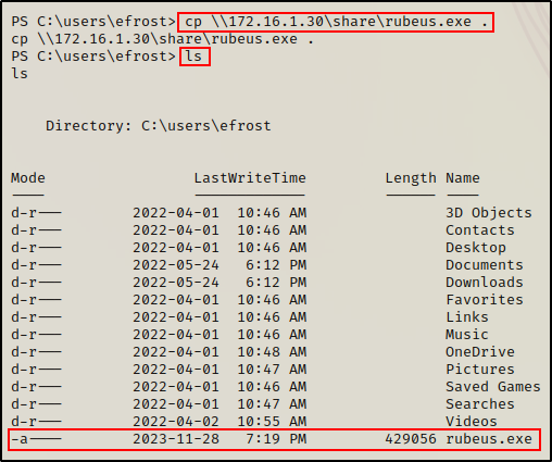 首先,我们需要将获取的 Rubeus 副本下载并传输到受害者机器上。