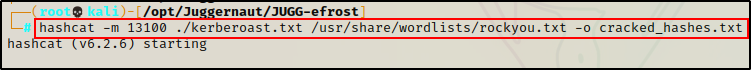 hashcat -m 13100 ./kerberoast.txt /usr/share/wordlists/rockyou.txt -o cracked_hashes.txt