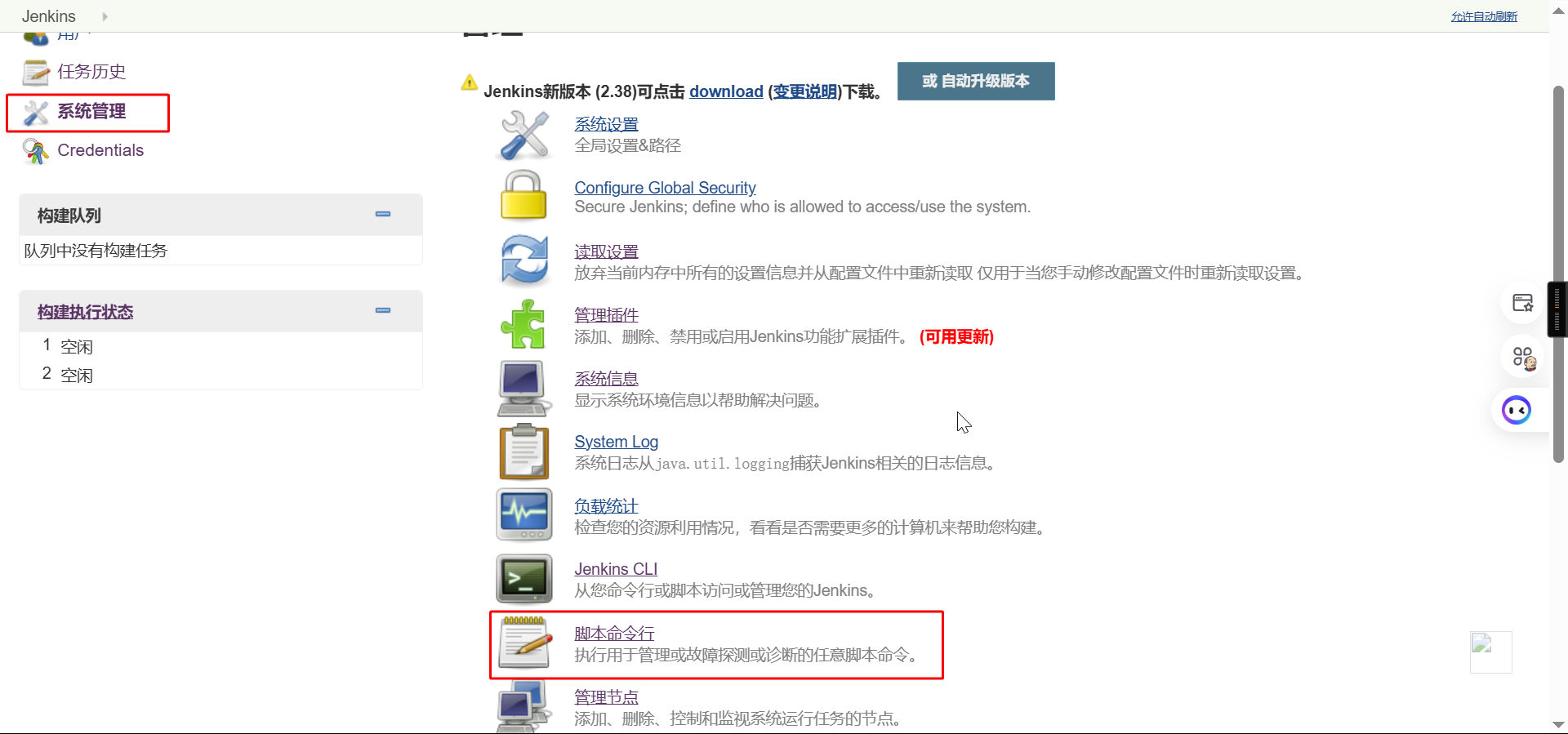 (1)导航到“系统管理-脚本命令行”页面,并编辑如下脚本内容: